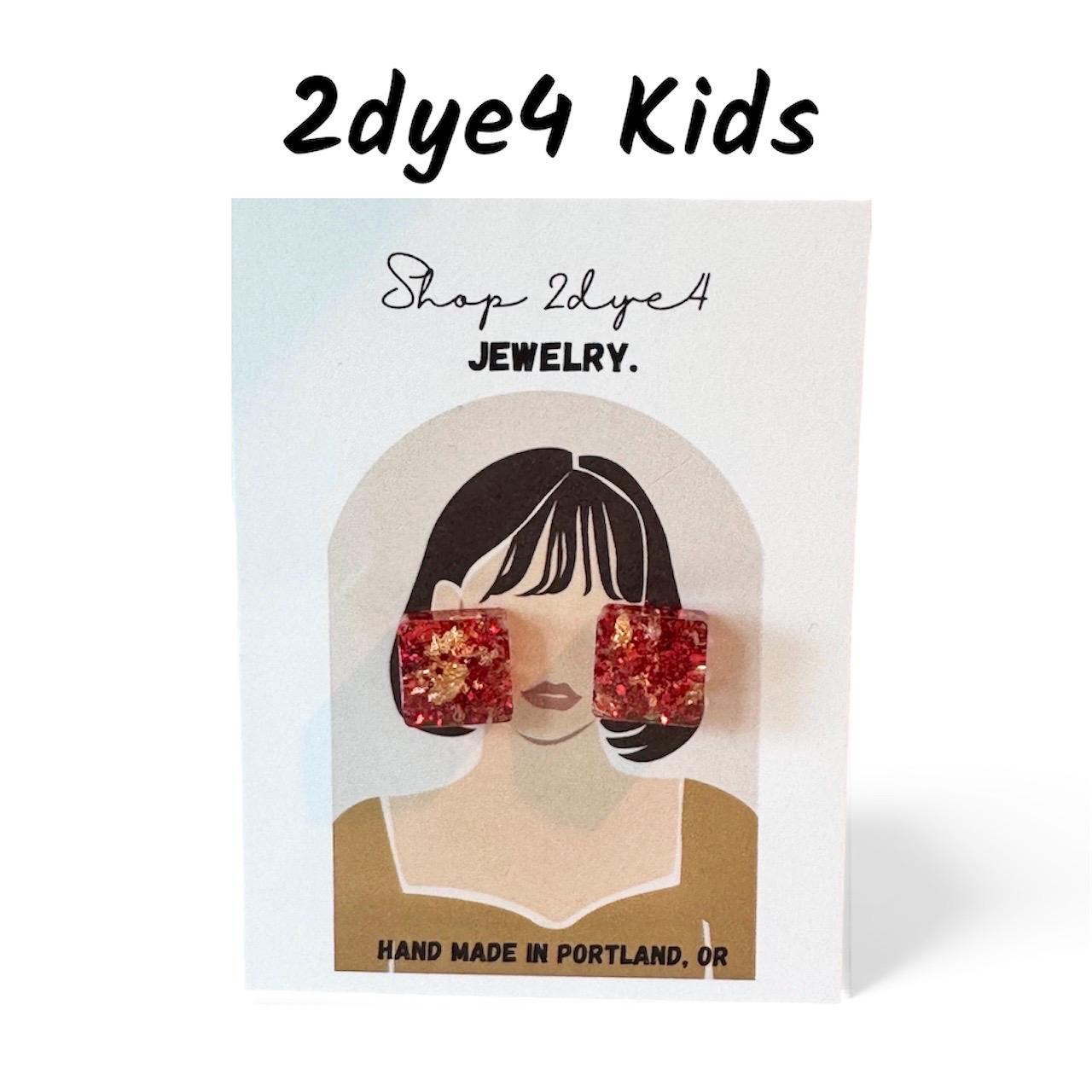 These Mini Resin Cube Studs are tiny but bold! Featuring deep red glitter with gold leaf accents, they’re perfect for festive outfits, kids’ holiday events, or everyday color. Their cube shape gives them a trendy, modern look while still being safe and lightweight for children.
