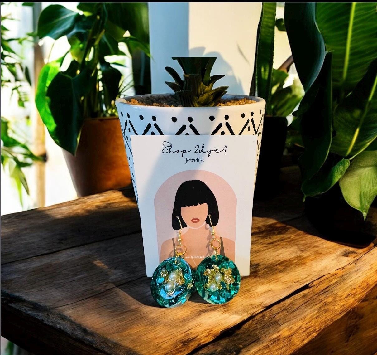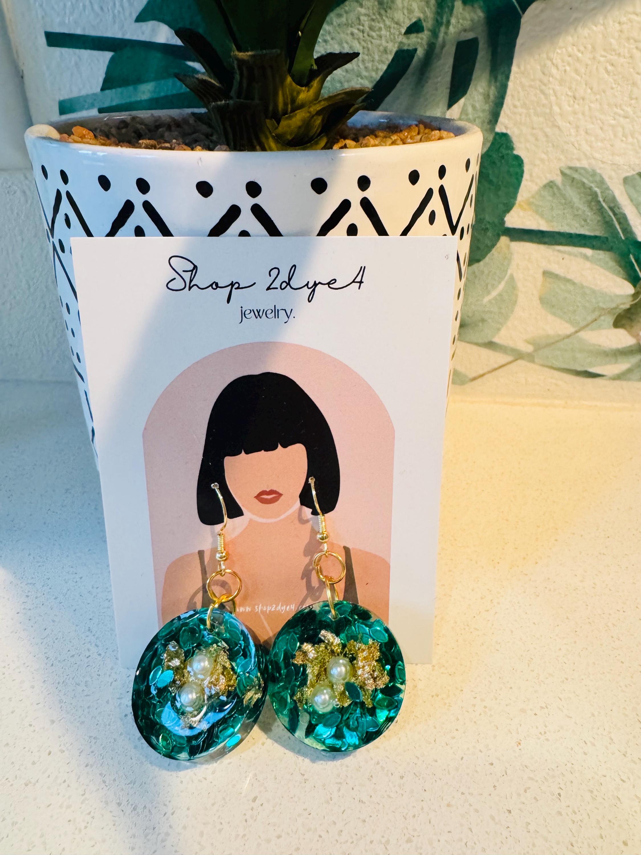 Featuring a deep vibrant green base with glimmering gold foil and luminous pearl accents, these round dangles capture the beauty of garden treasures. Lightweight yet eye-catching, they’re perfect for dressing up any outfit or making a bold everyday statement.