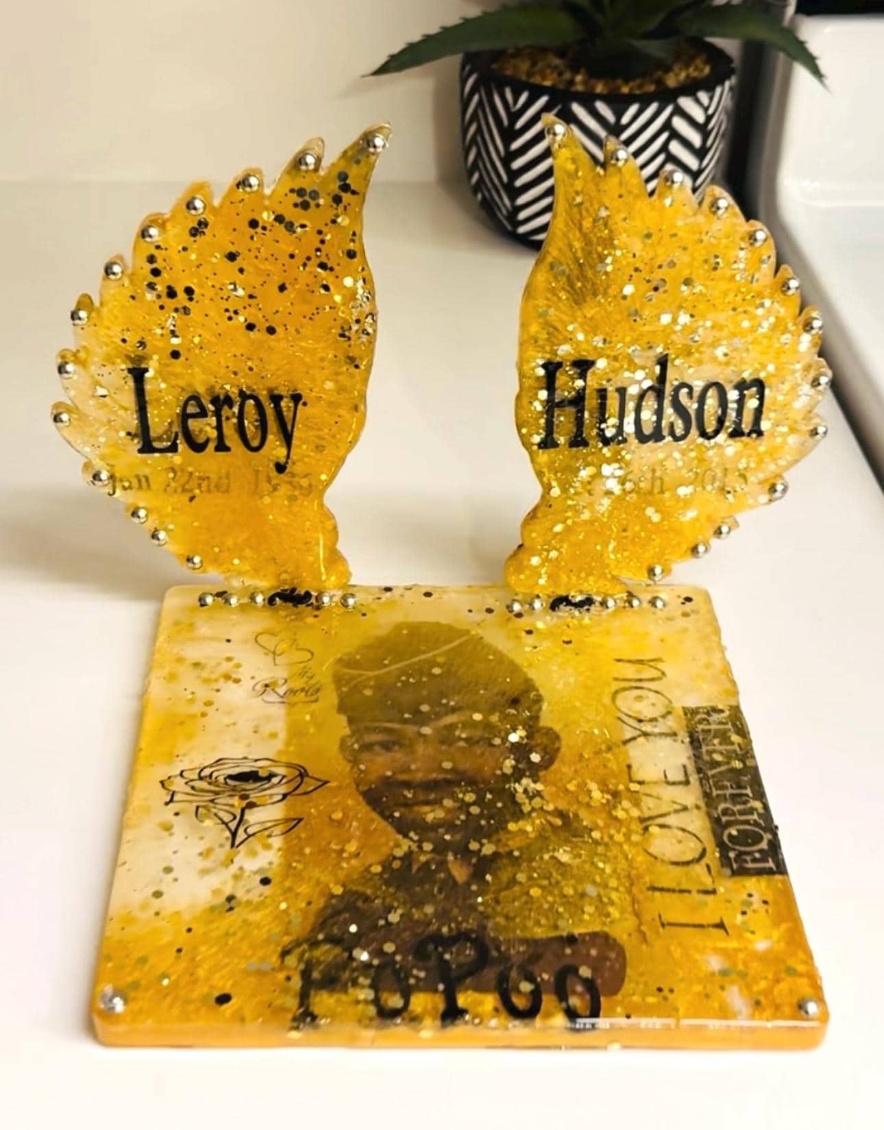 • Handcrafted resin with gold leaf & pearl moon accents