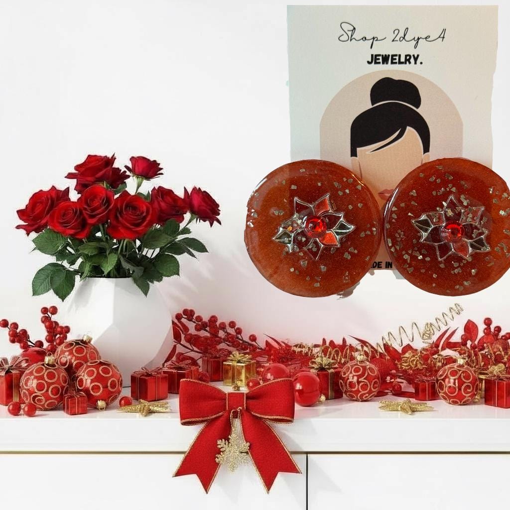 At the heart of each earring rests a radiant poinsettia charm — the timeless flower of the holiday season — symbolizing warmth, celebration, and love.